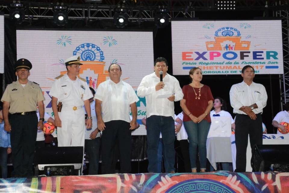 El pasado 05 de noviembre de presente año, el presidente municipal de Othón P. Blanco, Luis Torres, acompañado de su esposa la presidenta honoraria del DIF Municipal, Faustina Canul de Torres, clausuraron la Feria Regional de la Frontera Sur 2017.