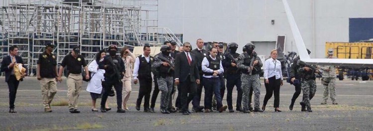 Por un fuerte contingente de la Policia Nacional de Panama el ex mandatario estatal que se acusa de haber «saqueado» al estado más de mil millones de pesos, fue escoltado para el aeropuerto donde subió una aeronave para trasladarlo a la Ciudad de México, y posteriormente se determinará si es traído al estado de Quintana Roo donde es acusado de los delitos de lavado de dinero, peculado, aprovechamiento ilícito y desempeño irregular de la función pública durante su mandato, para que se lleve a cabo el proceso en su contra.