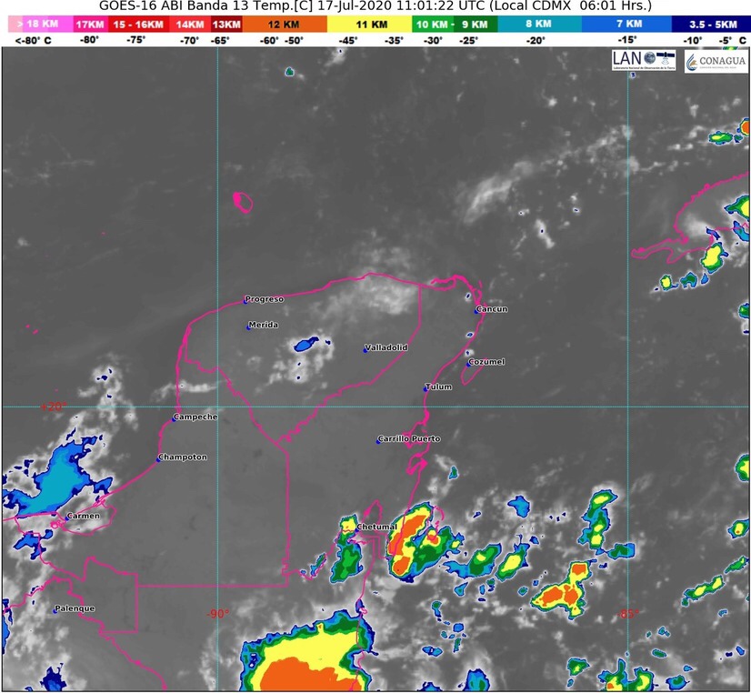 1.- Entrada de aire marítimo tropical con poco contenido de humedad procedente del Mar Caribe hacia la Península de Yucatán, lo que genera condiciones de temperaturas calurosas a muy calurosas, nubosidad variable con nubes de tormenta, así como, lluvias con chubascos ocasióneles aislados y actividad eléctrica, en la Península de Yucatán y en el estado de Quintana Roo, después d mediodía.