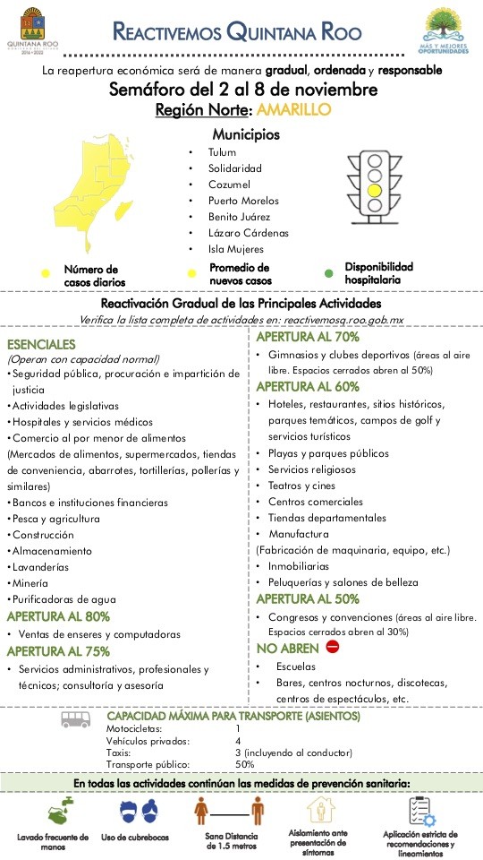 Durante su mensaje de cada jueves, el Gobernador del Estado, Carlos Joaquín Gonzáles señaló que el estado de Quintana Roo permanecerá en color amarillo durante la semana que corresponde a los días del 2 al 8 de noviembre. Aunque preciso las personas se han relajado en la zona norte donde se ha tenido un ligeroSigueSigue leyendo «NORTE DEL ESTADO EN RIESGO DE REGRESAR AL COLOR NARANJA DEL SEMAFORO EPIDEMIOLOGICO»