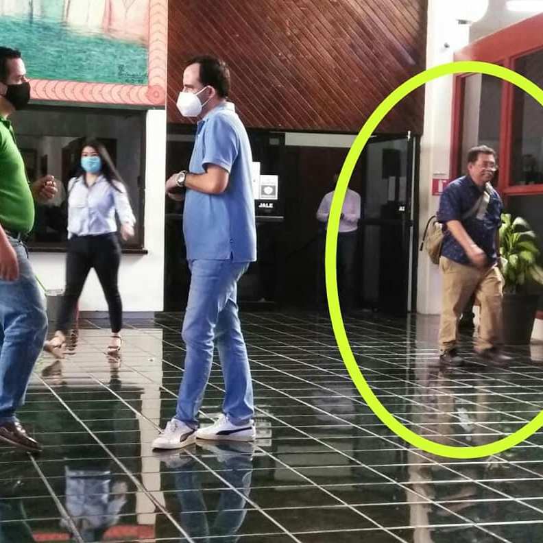 Y es que para ingresar al Congreso del Estado, los guardias de seguridad mantienen estrictas medidas de seguridad e higiene, en las que uno debe cumplir a la cabalidad o no se les permite el acceso, ya que se busca mitigar los contagios del nuevo coronavirus, aunque esto no aplica para algunos diputados de la XVI Legislatura pues como se ve en las imágenes, a Villatoro Barrios se le permite deambular sin su cubre bocas sin siquiera invitarlo a que cumpla con las medidas preventivas establecidas por las autoridades de Salud a nivel mundial.