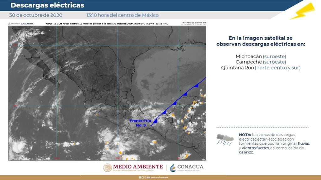 Cabe hacer mención que debido al frente frío número 9 que está influenciando a Quintana Roo, se espera lluvias y actividad eléctrica en gran parte de la geografía estatal.