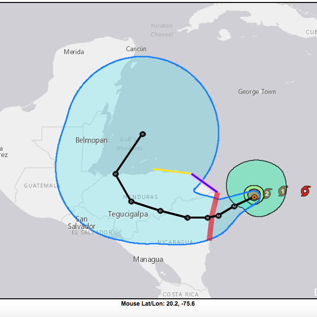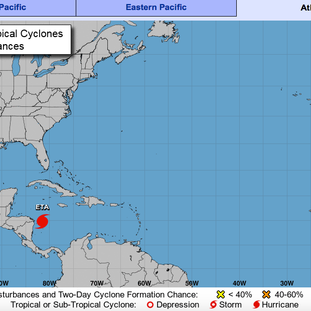 Actualmente ETA es un Huracán categoría 2 en la escala Saffir Simpson y mantiene una trayectoria con dirección al país de Nicaragua, donde cruzara también afectando a Honduras y luego saldrá de tierra, aunque es importante señalar que este sistema Hidrometeorológico presenta una trayectoria estimada en la que el fenómeno realizaría un giro hacia el noreste una vez salga de Centro América, lo que lo haría regresar al mar Caribe como una depresión tropical, pasando frente a las costas de Quintana Roo.