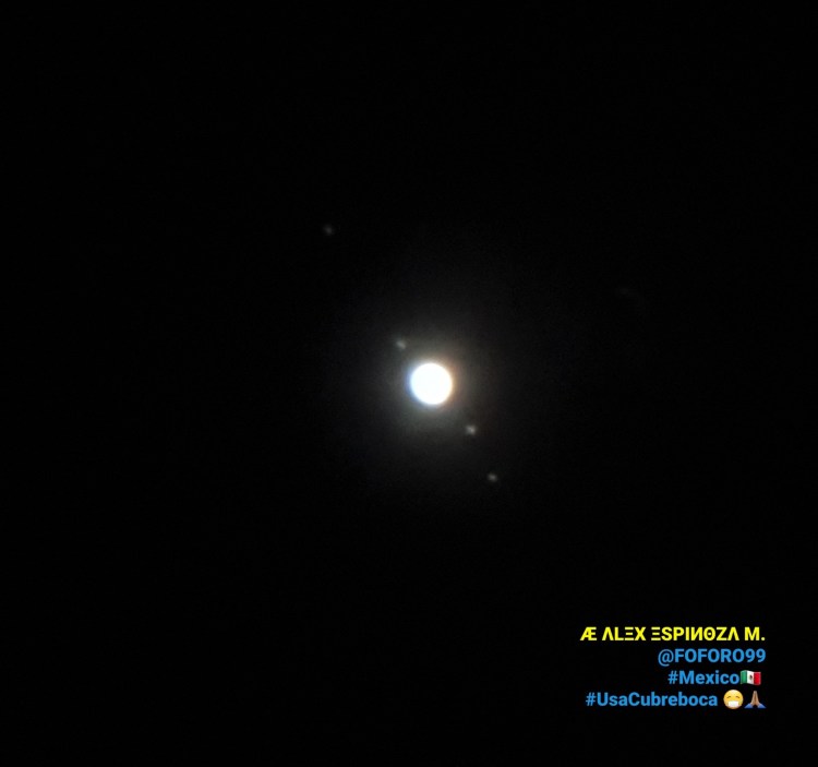 Alex Espinoza, un fotógrafo por afición capto la magnificencia del espacio con la lente de su telescopio, donde se puede ver a el gigante Jupiter con sus lunas, el espectacular Saturno con sus anillos y nuestra bella Luna, durante la noche del primero de noviembre.