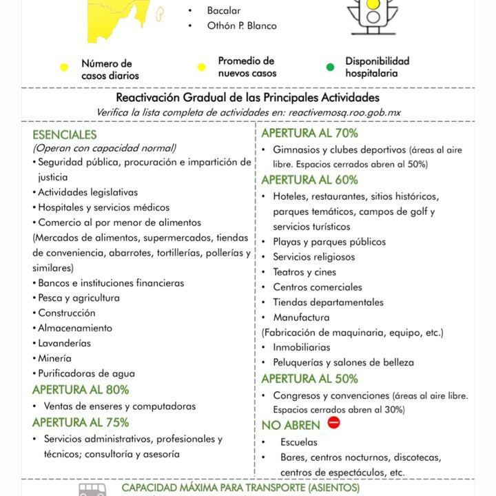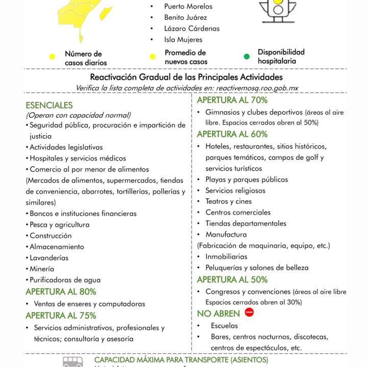La semana que se aproxima que corresponde a los días del 9 al 15 de noviembre, el estado de Quintana Roo permanecerá en color amarillo en el semáforo epidemiológico estatal.