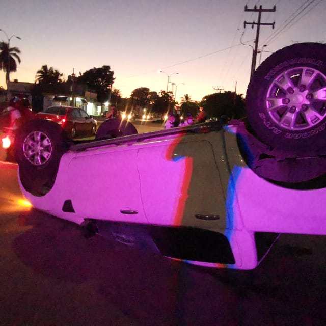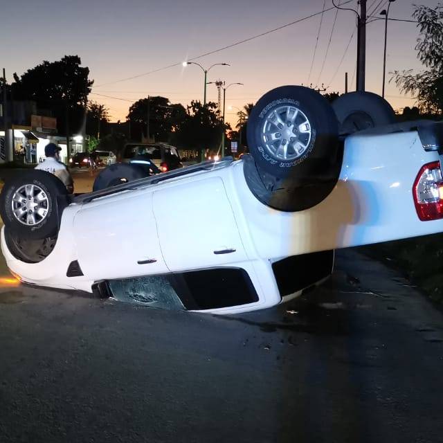 La tarde/noche de este sábado se registro un increíble accidente vehicular en el que una camioneta tipo pick up terminó volcada, luego de que presuntamente evitara impactar a un motociclista que se atravesó en su camino en la colonia Nuevo Progreso.