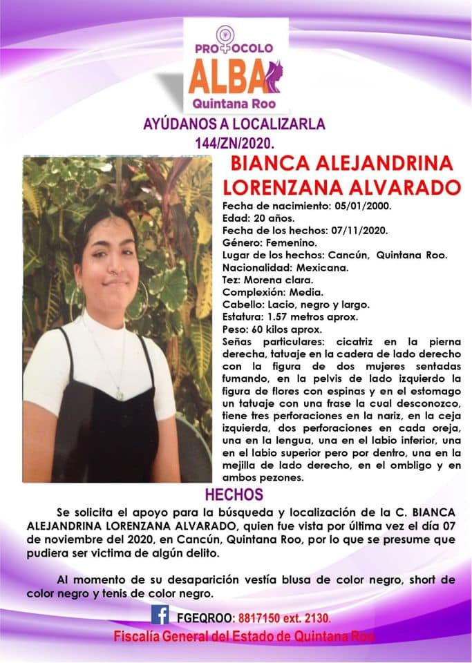 Las autoridades procedieron con cautela al realizar la inspección de las bolsas, por lo que al abrirlas encontraron el cadáver desmembrado de una joven mujer, el cual se encontraba dentro de varias bolsas negras en el área verde del lote 4, número 45 en la manzana 34, en ese momento todo apuntaba a que el cuerpo localizado correspondía a la joven de 20 años desaparecida desde el día 7 de noviembre, Bianca Alejandrina L.A., a quien de cariño le decían ‘Alexis’ por sus familiares y amigos.