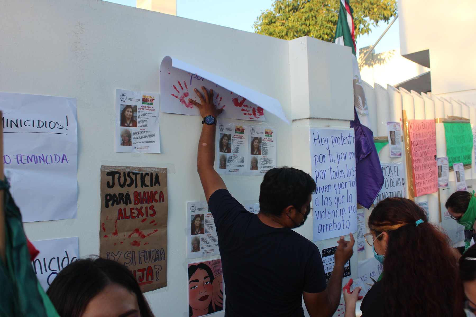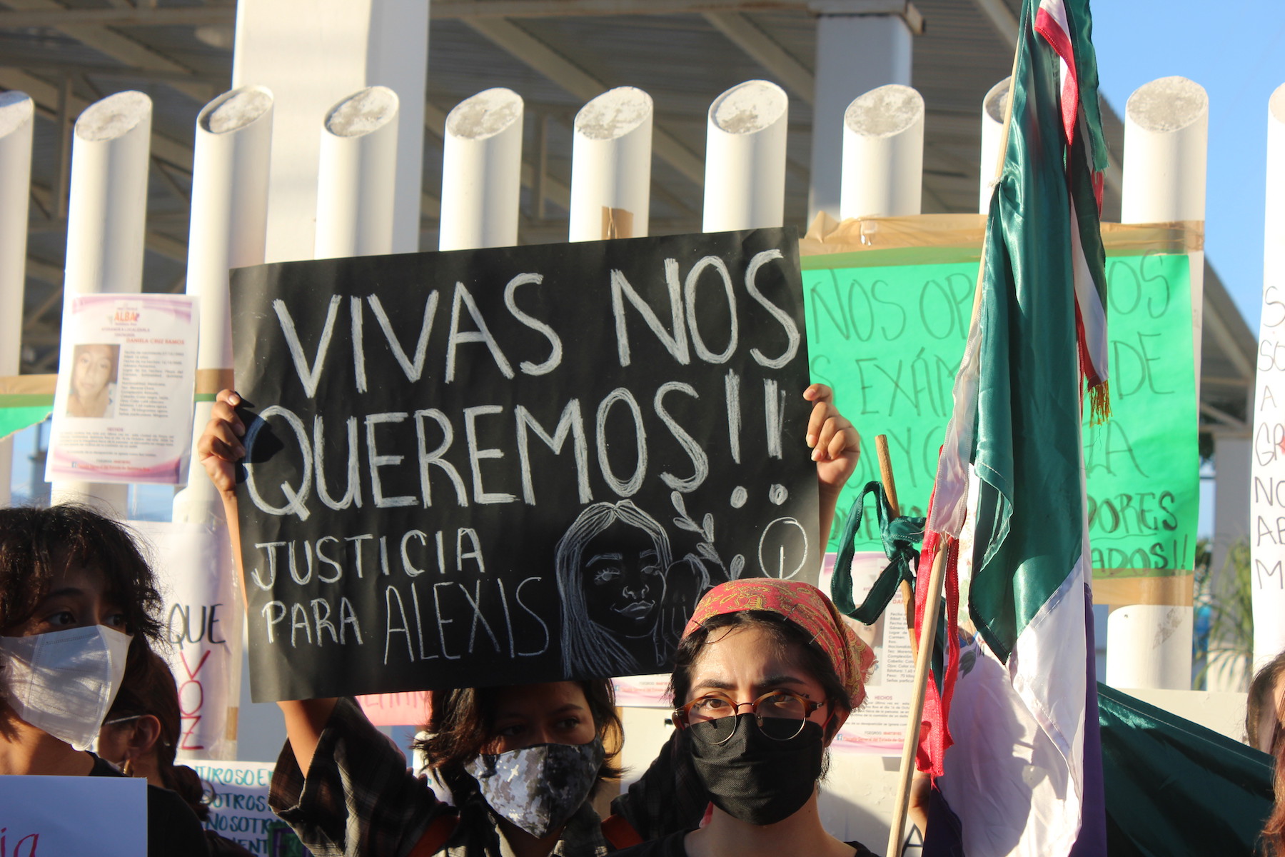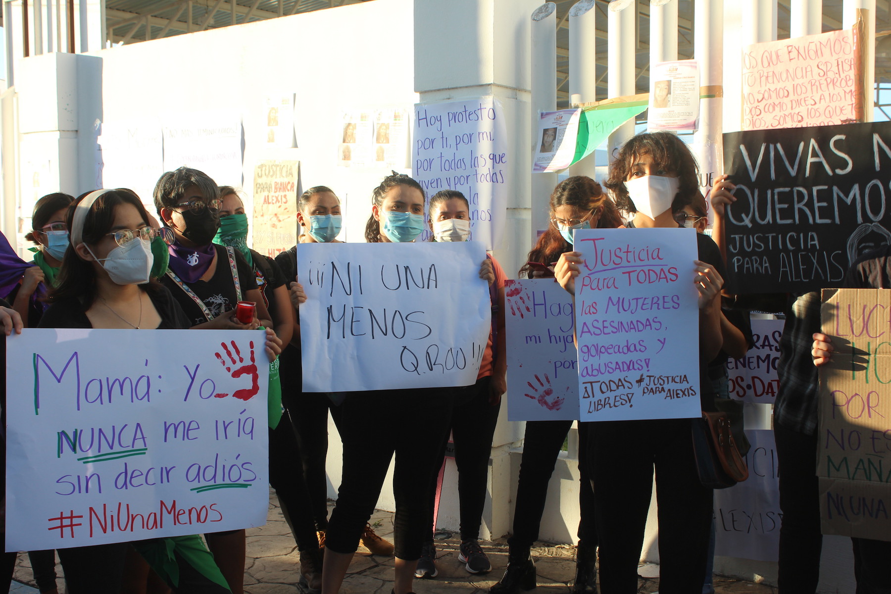 En torno de las 5 de la tarde varias jóvenes se reunieron fuera de los edificios de la Fiscalía General del Estado que se encuentran repartidos en los distintos municipios de la entidad, esto para demostrar que se encuentran unidas en contra de una sola cosa ‘LA VIOLENCIA Y EL ASESINATO EN CONTRA DE LAS MUJERES’, los mensajes de las manifestantes fueron evidentes, con pancartas, fotos, lonas y pintura que decían: “Mamá yo nunca me iría sin decir adiós”, “Lucho hoy por si no estoy mañana, Ni una menos”, “Somos el grito de las que ya no tienen”, “Vivas nos queremos, justicia para Alexis”.