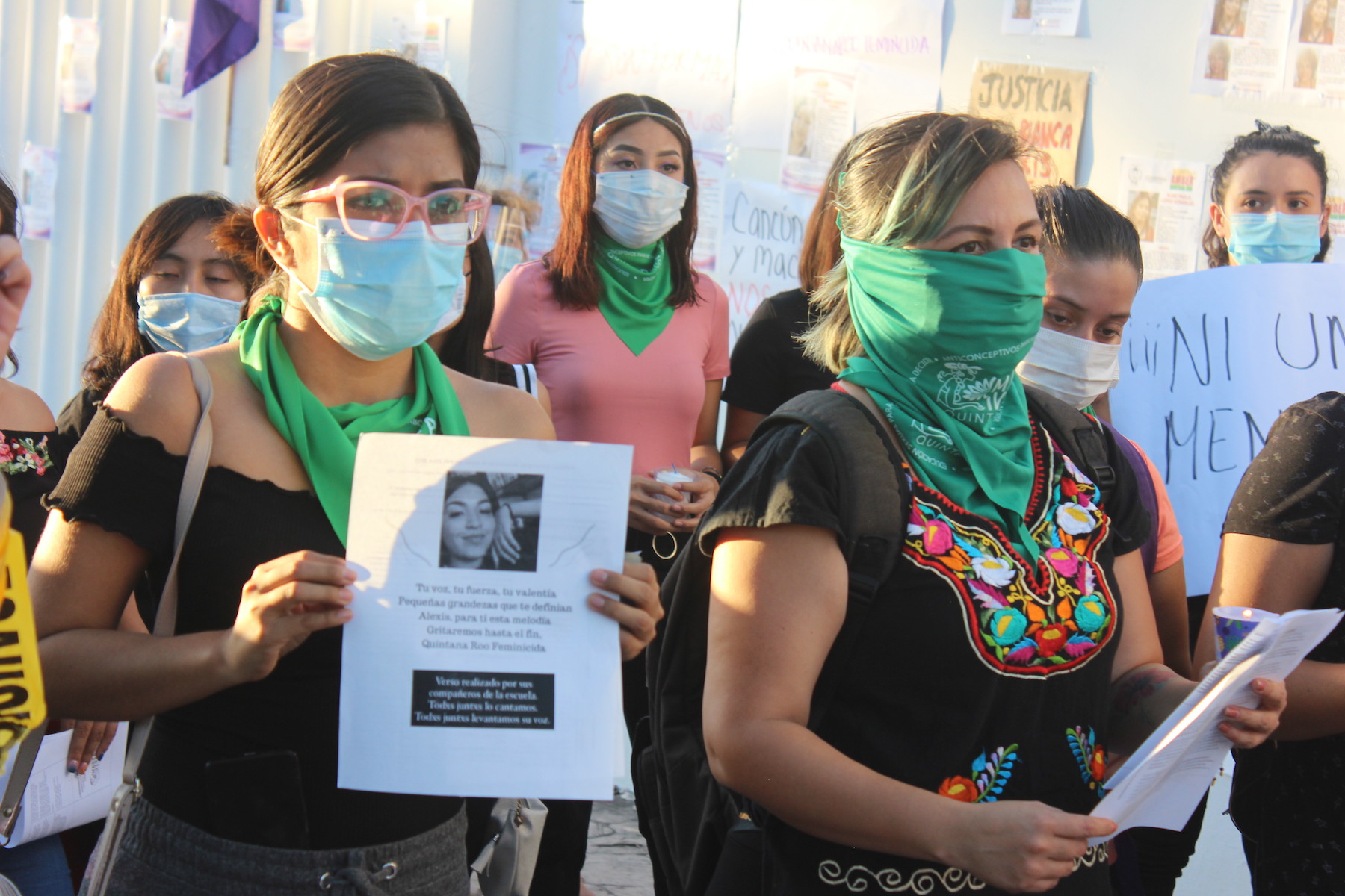 Las mujeres de distintos rangos de edades dieron a conocer su molestia por el estado de indefensión en el que se encuentran hoy día las mujeres en todo el estado, Yunitzilin Rodríguez Pedraza integrante del colectivo Marea Verde, señaló “Ya estamos hartas, QUINTANA ROO ES UN ESTADO FEMINICIDA, Quintana Roo no es un paraíso, el lugar donde vienen los turistas a disfrutar es un peligro para las mujeres”.