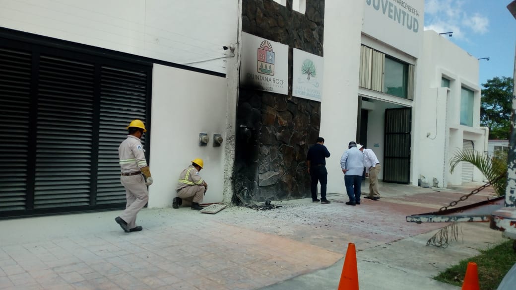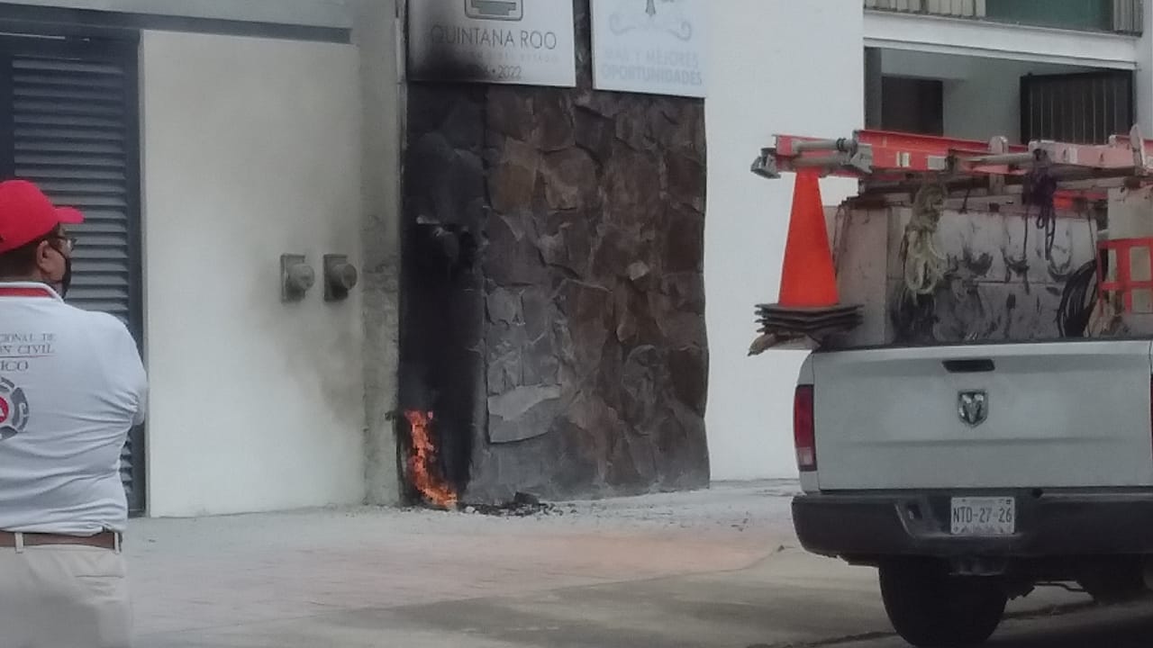 Esta tarde se reporto un corto circuito en el registro eléctrico que se ubica fuera de las instalaciones del edificio ocupado como Instituto Quintanarroense de la Juventud, mismo que provocó una gran movilización de cuerpos de emergencias, los cables que conectan con el medidor de electricidad comenzaran a sacar chispas y luego una llamarada, lo que provoco varias personas entraran en pánico al pensar que se quemaría todo el edificio.