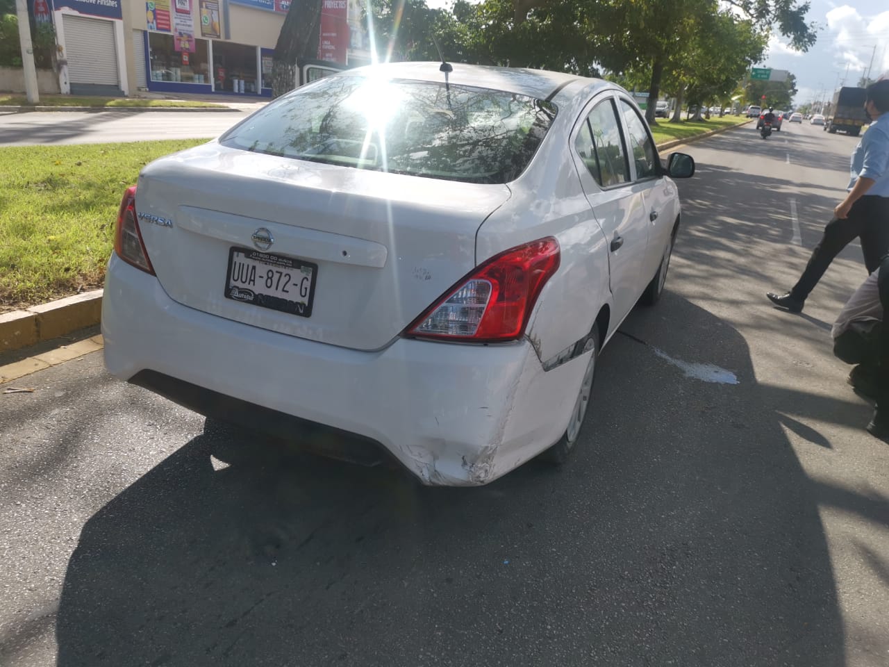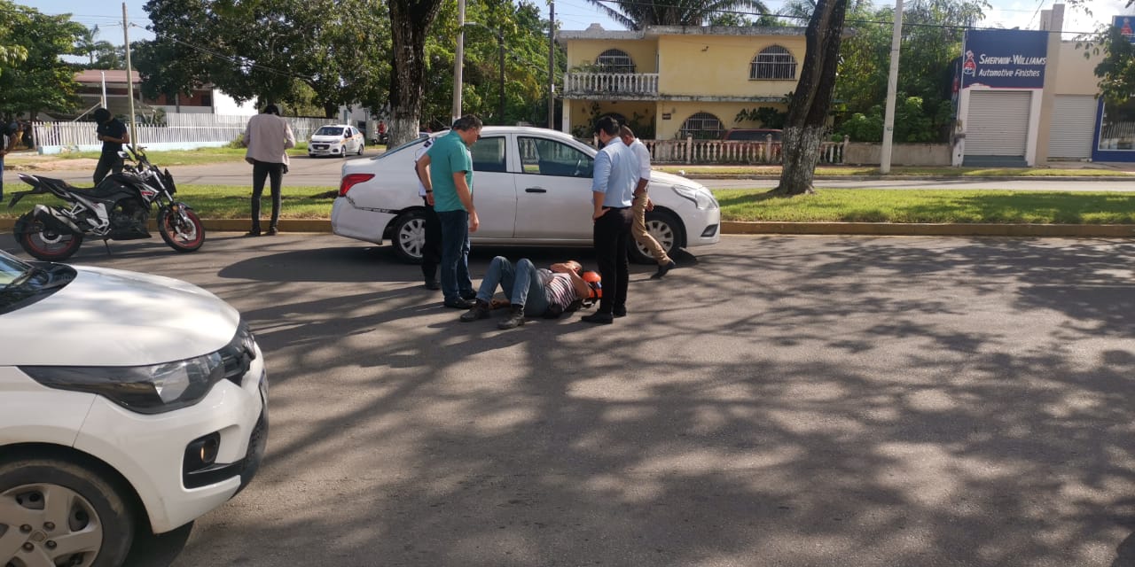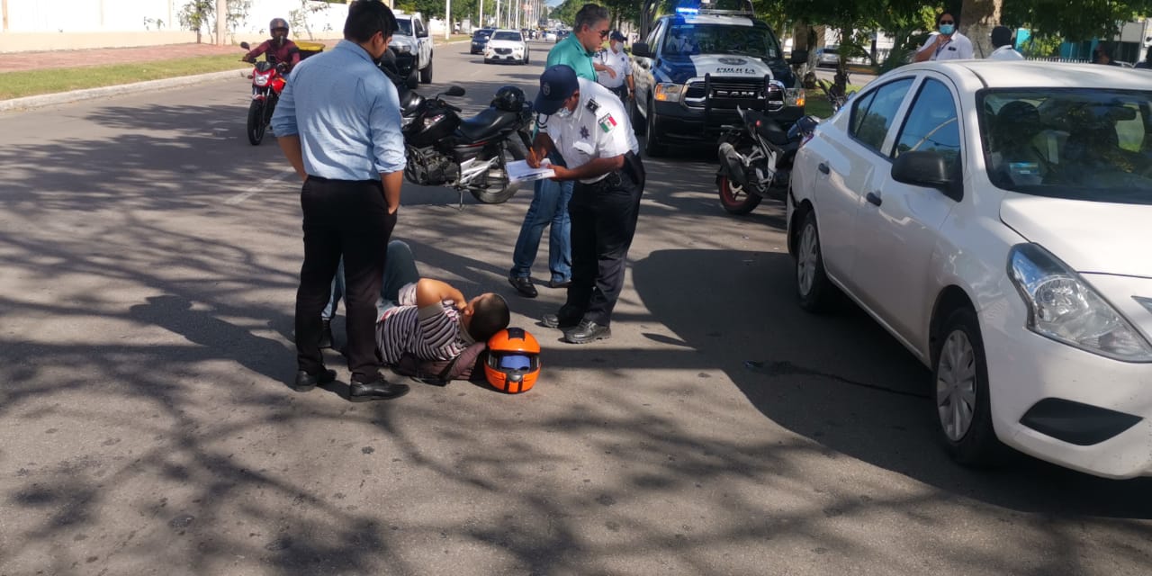 Esta tarde un motociclista termino con lesiones corporales, luego de que se impactara en la parte posterior de un automóvil cuando viajaba en su motocicleta sobre la avenida Insurgentes en la ciudad de Chetumal.