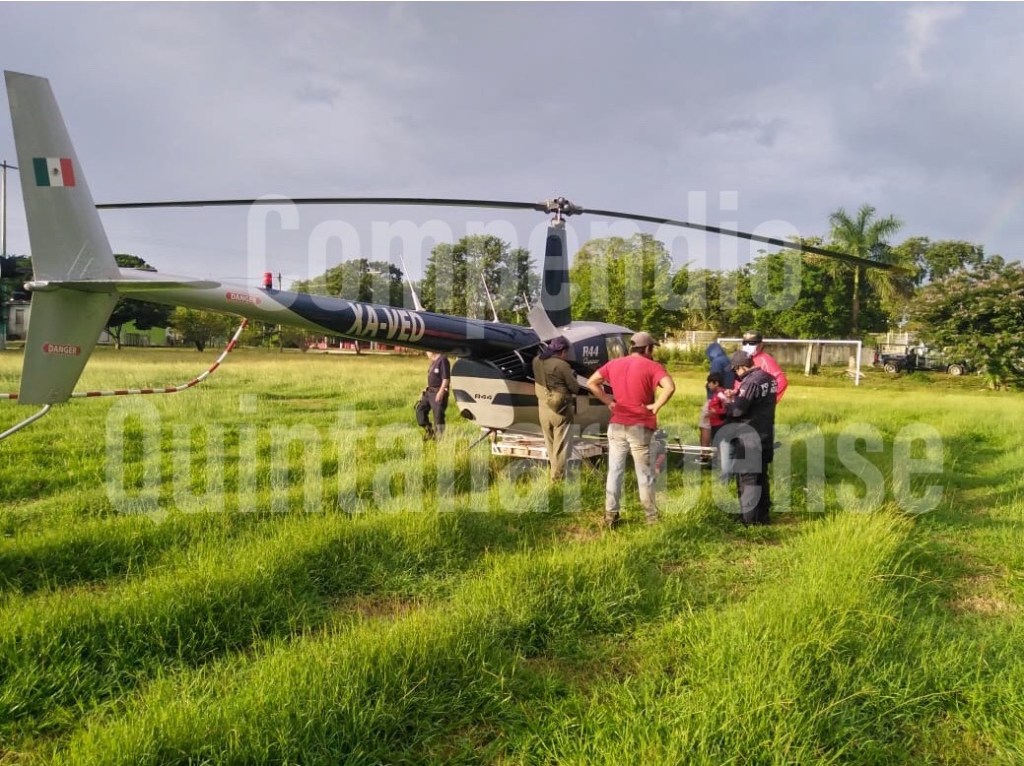 Esta mañana los pobladores de la comunidad de Carlos A. Madrazo de la Ribera del Río Hondo quedaron atónitos al ver que un helicóptero sobrevolaba muy bajo en las inmediaciones del poblado, motivo por el cual reportaron al numero de emergencias 911, ya que aseguraban este aterrizo en el campo de futbol del poblado.