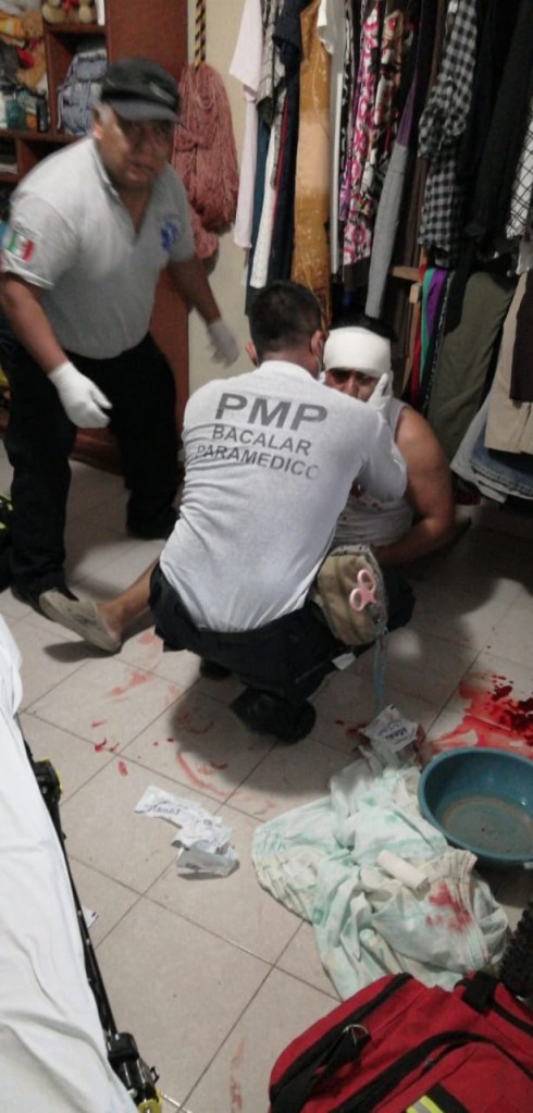 Las autoridades fueron alertadas sobre lo ocurrido por lo que desplegaron una rápida movilización hasta el sitio, donde paramédicos del Grupo de Respuesta a Emergencias Medicas brindaron los primeros auxilios al lesionado quien presento un disparo en la cabeza, debido a la gravedad del incidente los paramédicos trasladaron en código rojo al lesionado al Hospital Comunitario de Bacalar, donde tras estabilizarlo de nueva cuenta fue abordado en la ambulancia y trasladado hasta el Hospital General de Chetumal para su atención medica adecuada.