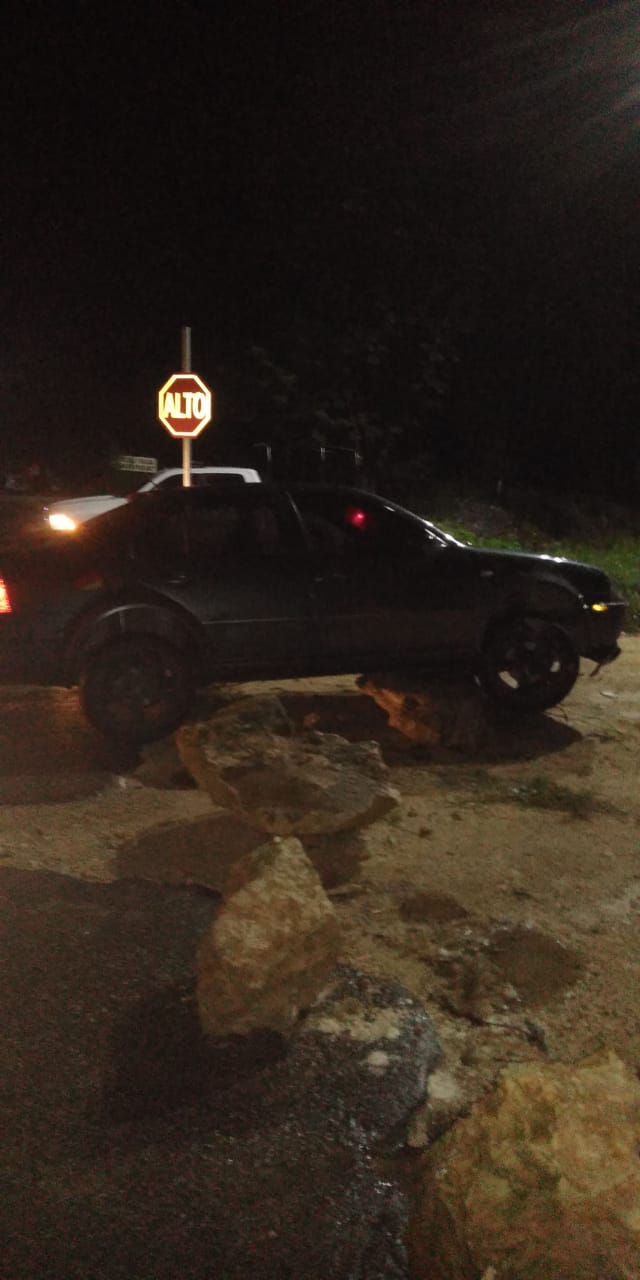 De acuerdo a testigos de este percance, el conductor iba circulando en dirección poniente a oriente sobre la avenida Prolongación Ernesto Villanueva a bordo de su unidad volkswagen tipo jetta color negro, cuando al llegar a la calle Panamá no se percato de las grandes rocas que se colocaron para mantener cerrado el paso, momento en que el chofer de la unidad colisiono con estas y la unidad en la que viajaba quedo atorada.