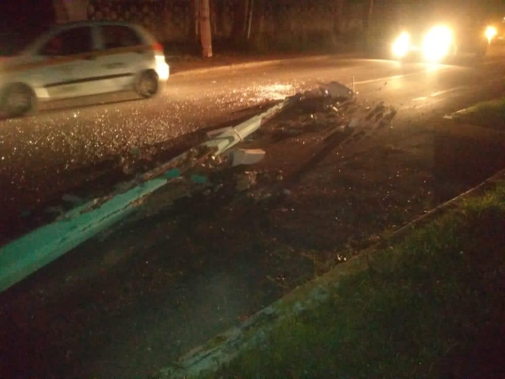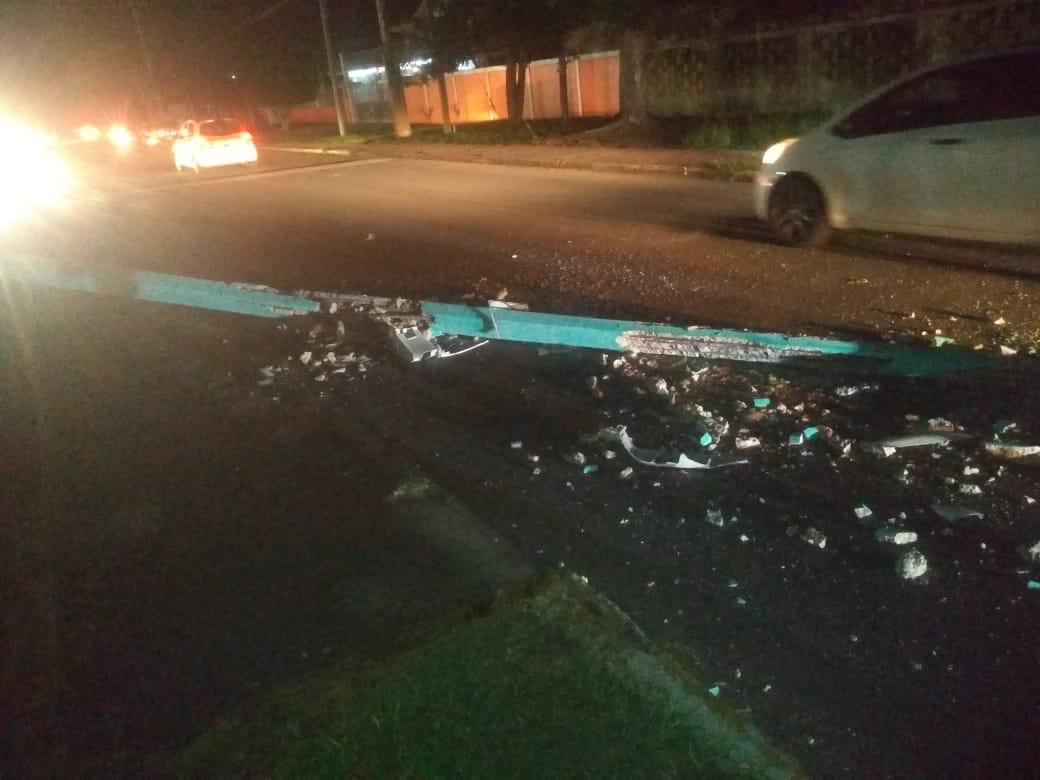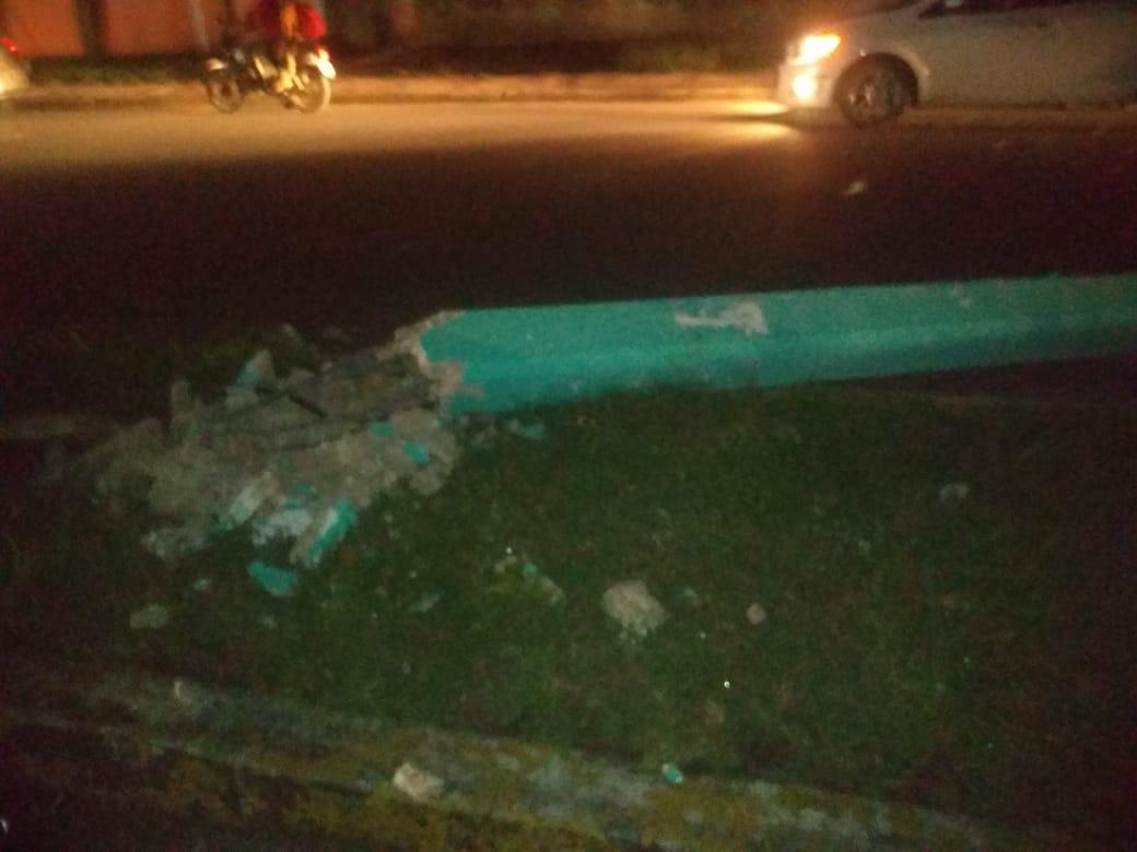 La noche de ayer un accidente vehicular estuvo a punto de provocar la muerte a un peatón, quien se encontraba caminando sobre la avenida cuando escucho el fuere impacto, el poste de alumbrado publico cayo a escasos metros de el, el responsable del percance huyo del lugar en dirección desconocida.