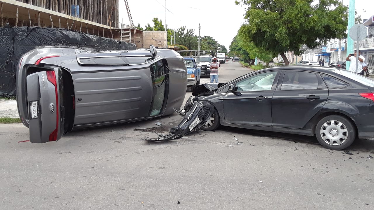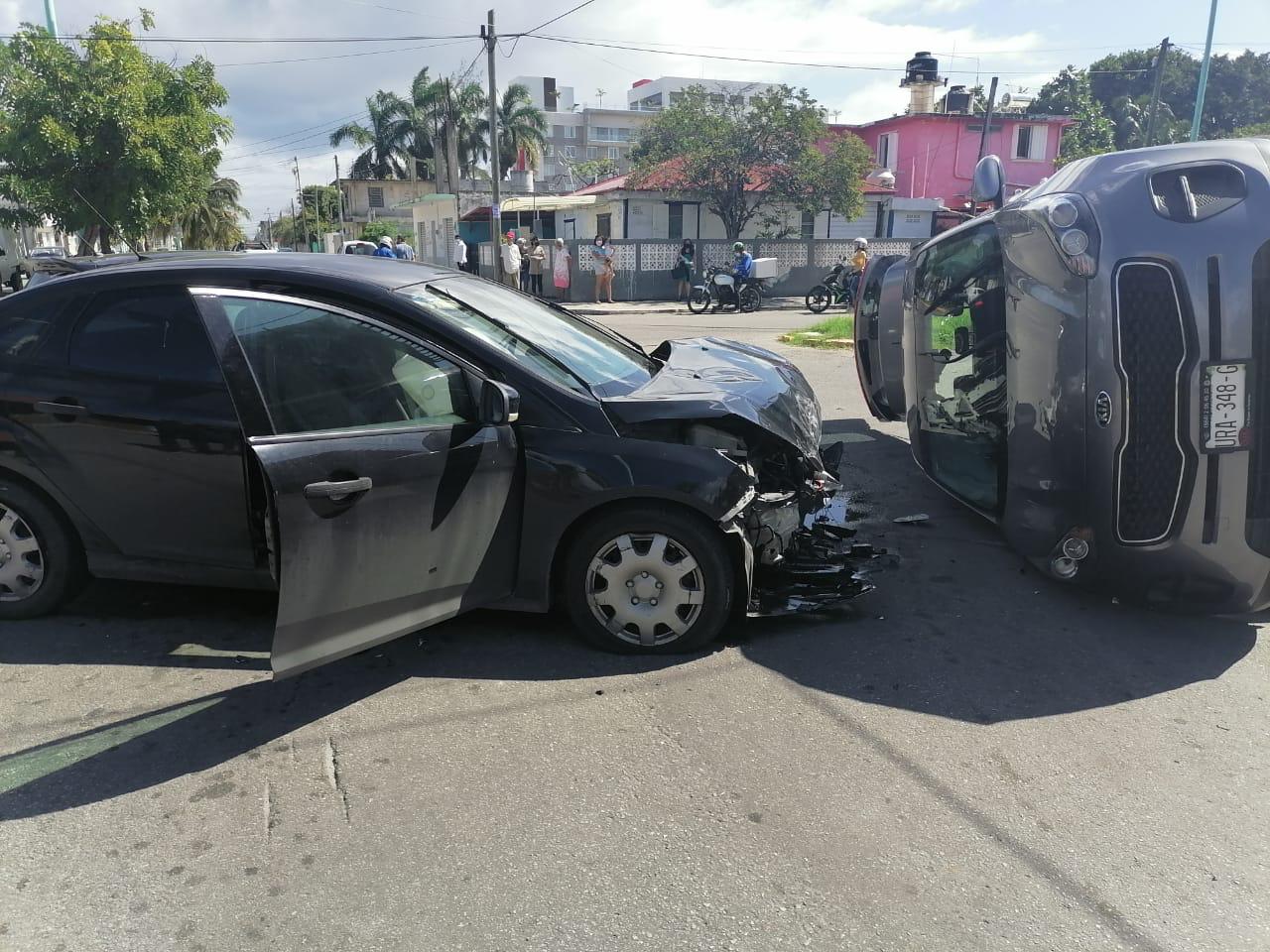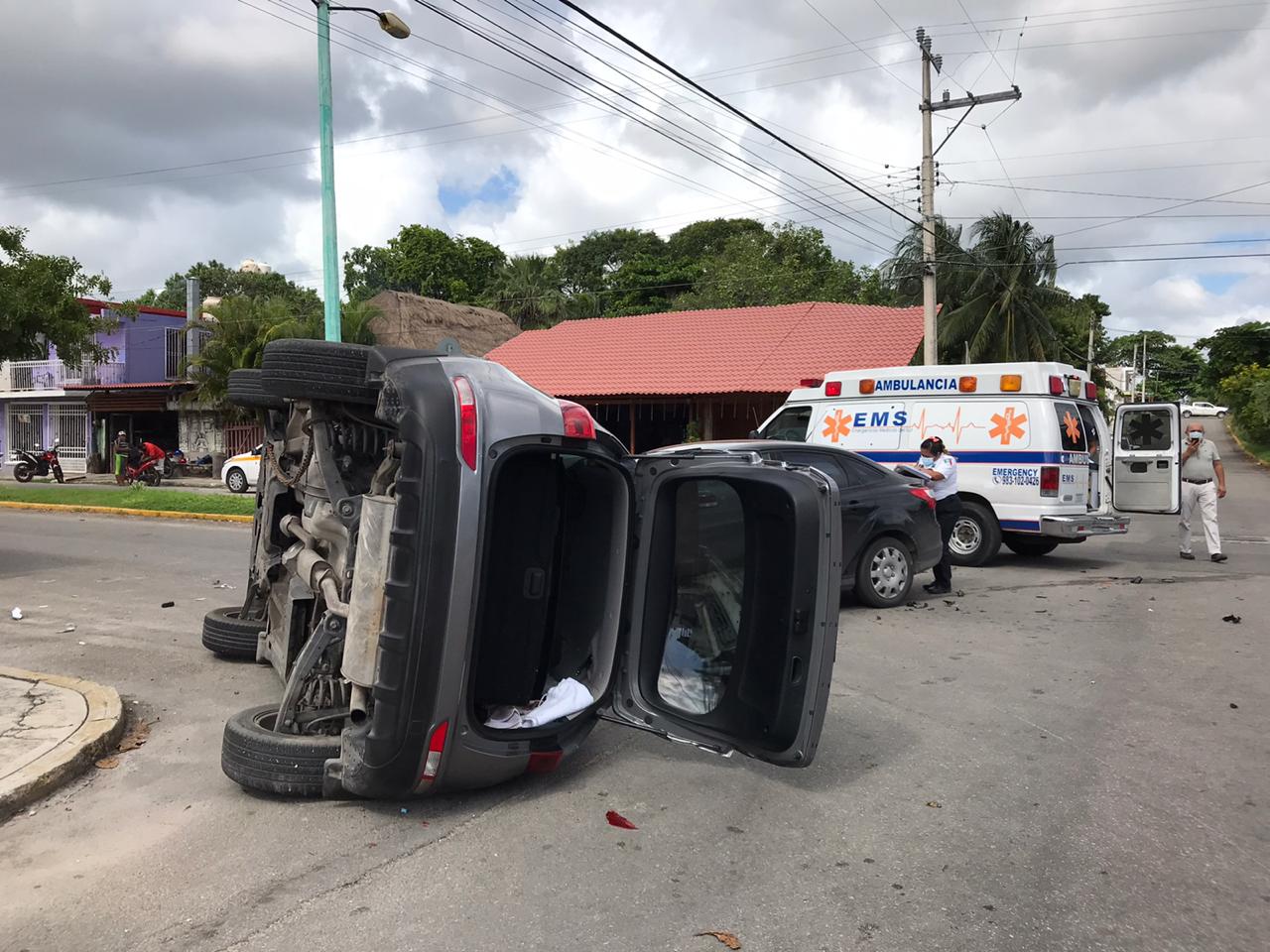 Un increíble accidente vehicular provoco la volcadura de una camioneta, hecho ocurrido esta tarde en la colonia Centro de Chetumal, donde la falta de precaución y falta de pericia provocaron el dantesco accidente.