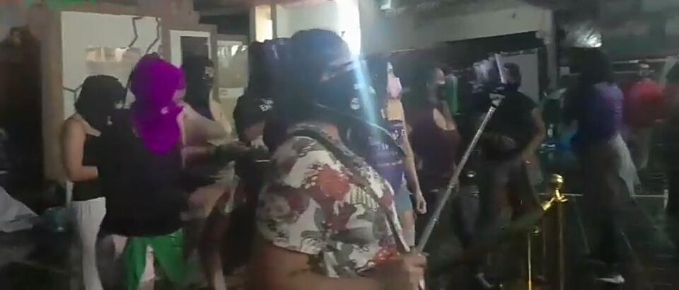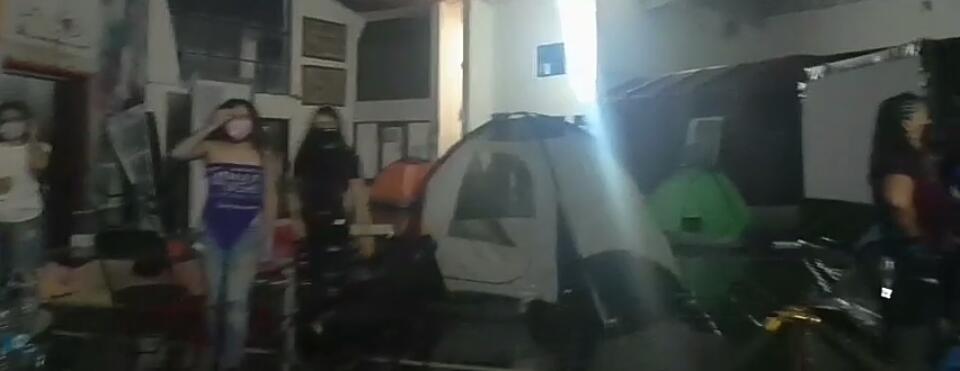 Esta noche el grupo de mujeres feministas que mantenía un plantón permanente a las afueras del congreso del estado, tomo las instalaciones y se estableció en el vestíbulo, luego de que el personal de seguridad les diera a conocer que mantendrían cerradas las instalaciones por el fin de semana y no podrían usar el baño.