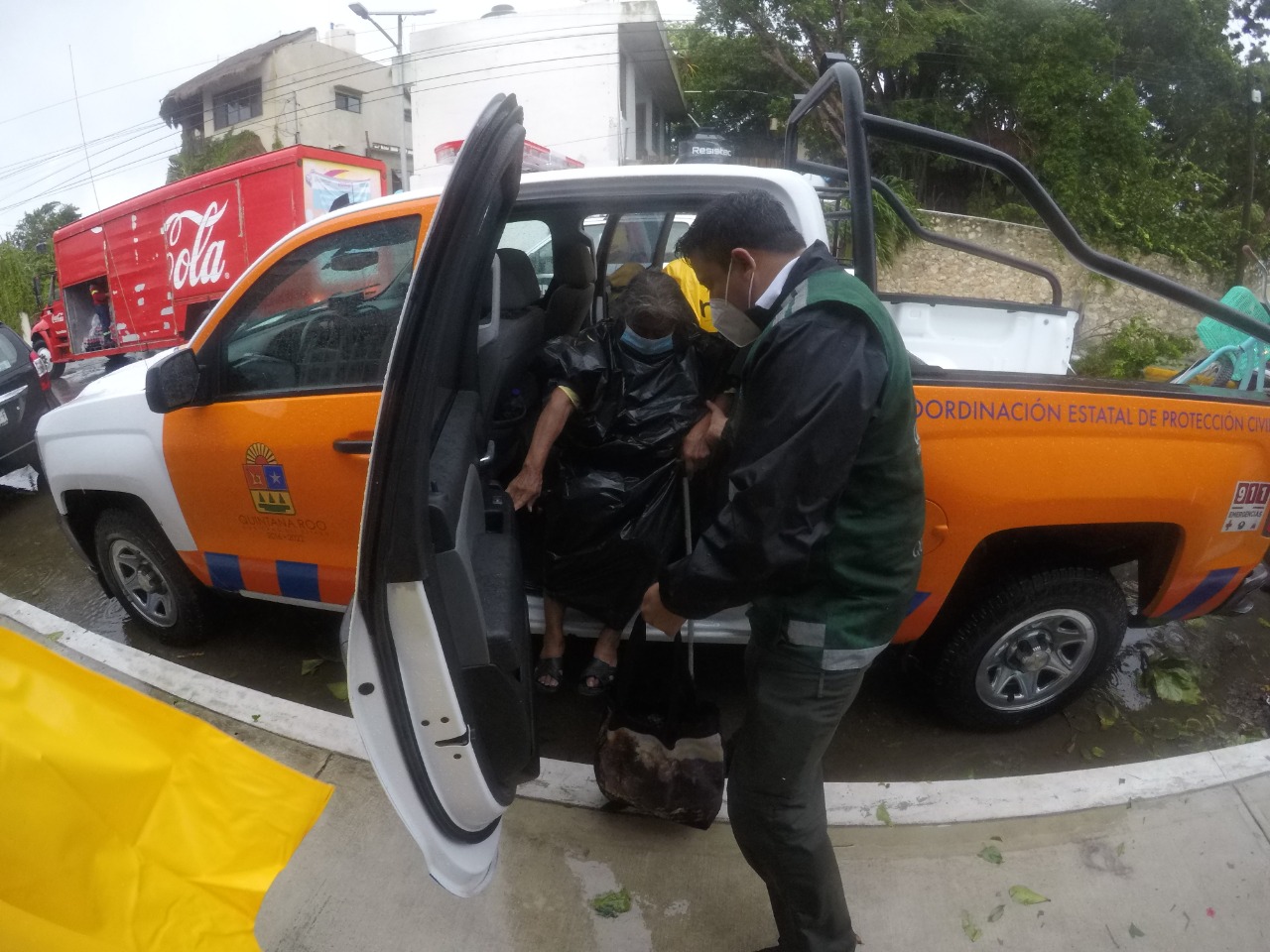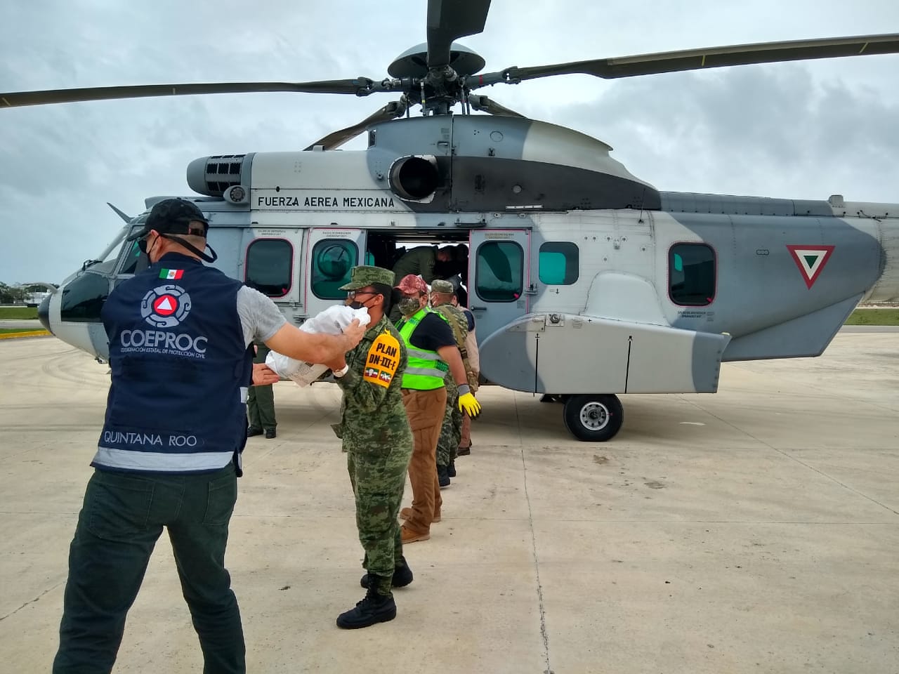 Por lo que la Coordinación Estatal de Protección Civil, con ayuda de las fuerzas armadas, trasladó apoyos alimentarios vía área, a comunidades incomunicadas vía terrestre en los municipios de Bacalar (Monte Olivo, Paraíso, San Román, Cedralito, Andrés Quintana Roo, Colonia del Valle, Huatusco, Payo Obispo, Progreso y Río Verde), en el municipio de Othón P. Blanco se encontraban incomunicadas cinco poblaciones, recibiendo apoyo a través de un puente aéreo (Lázaro Cárdenas, El Cedral, La Libertad, San Pedro Peralta y Limonar), incluso se llevaron a cabo traslados aéreos de mujeres embarazadas o personas enfermas que requerían de atención médica.