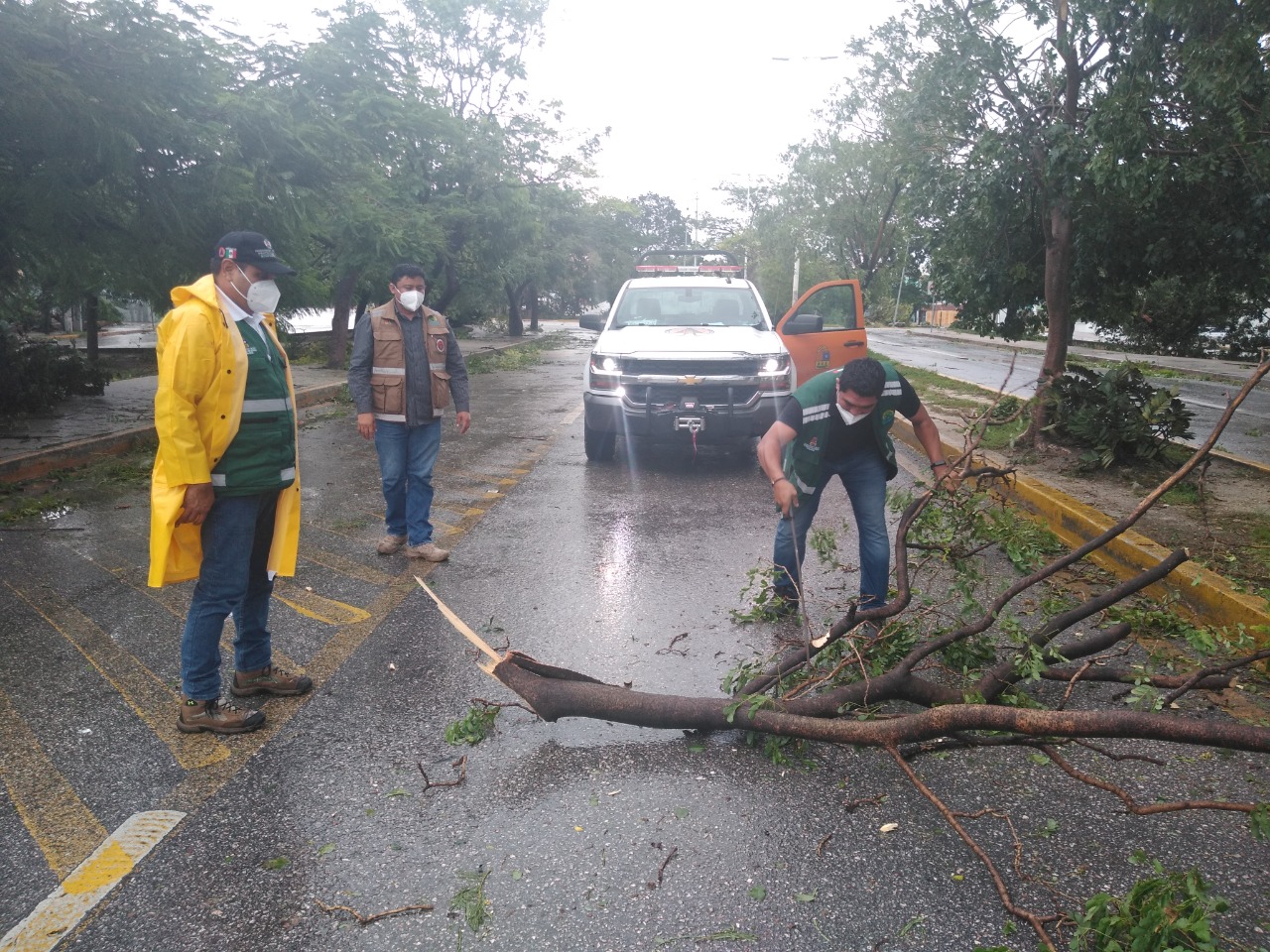 Ante el inminente impacto de los fenómenos hidrometeoro lógicos, la Coordinación Estatal de Protección Civil mantuvo activas sus brigadas de atención tanto para limpieza de vialidades, como para apoyo y auxilio de la sociedad, acudiendo a zonas de difícil acceso para brindar traslado a quien lo requiera por ser zonas de alto peligro ante el impacto de un fenómeno hidrometeorológico.