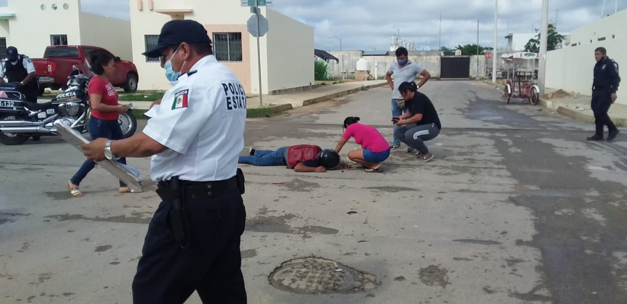 MUJER NO RESPETA SU ALTO Y PROVOCA ACCIDENTE, MOTOCICLISTA TERMINA LESIONADO
