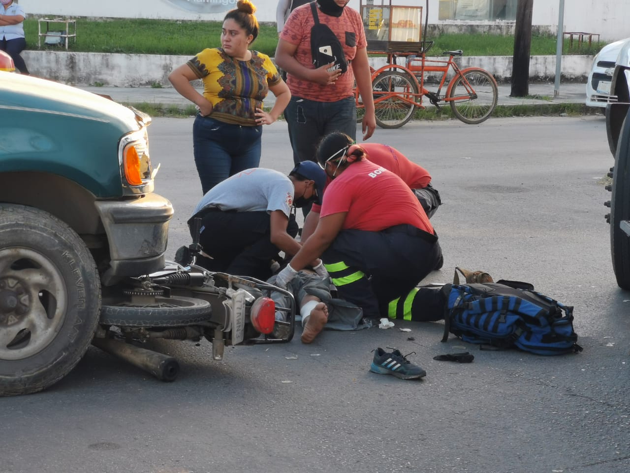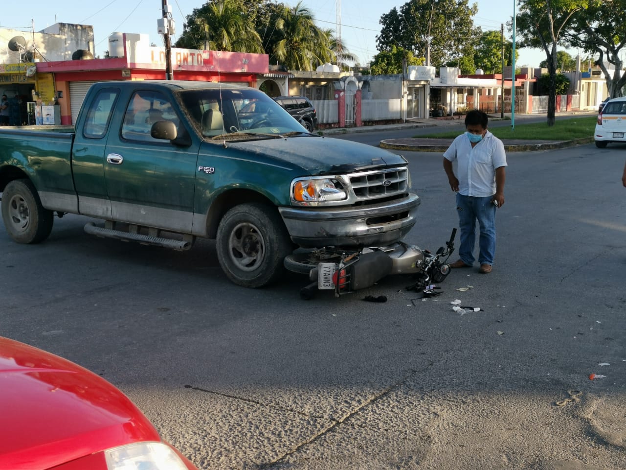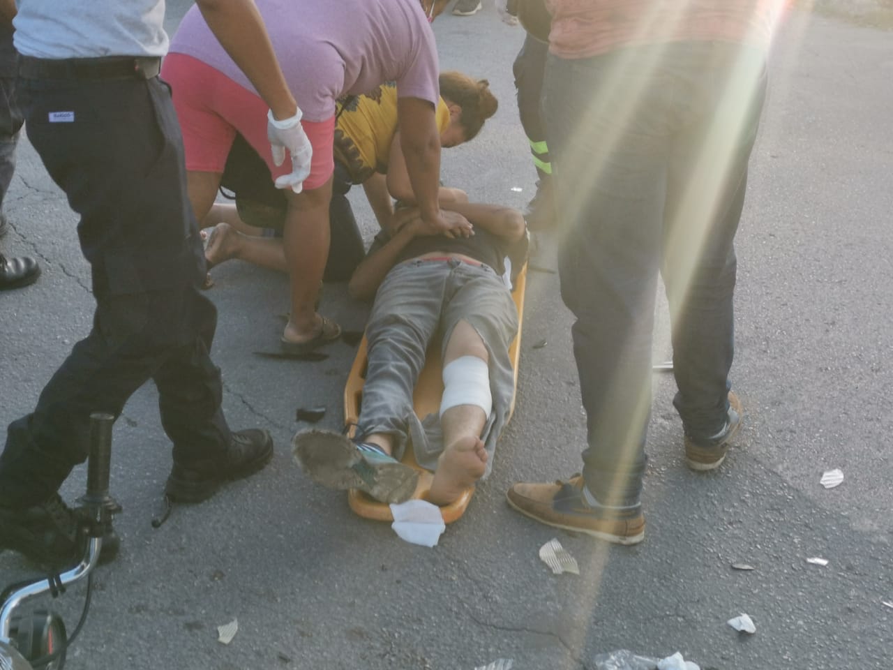 El percance ocurrió aproximadamente a las cinco de la tarde, cuando un joven motociclista iba circulando en paso preferencial a bordo de su motocicleta color negro acompañado de una joven, cuando al llegar al cruce de la calle Isla Cancún vio que una camioneta Ford pick up color verde agua marina no respeto su alto marcado con disco fijo, en ese instante el motociclista noto que la camioneta no se iba a detener por lo que se evento junto a su acompañante e instantes después su moto fue aplastada por la unidad en tanto los dos jóvenes resultaron con lesiones diversas a causa de la mala caída y el golpe que alcanzo a darles la camioneta.