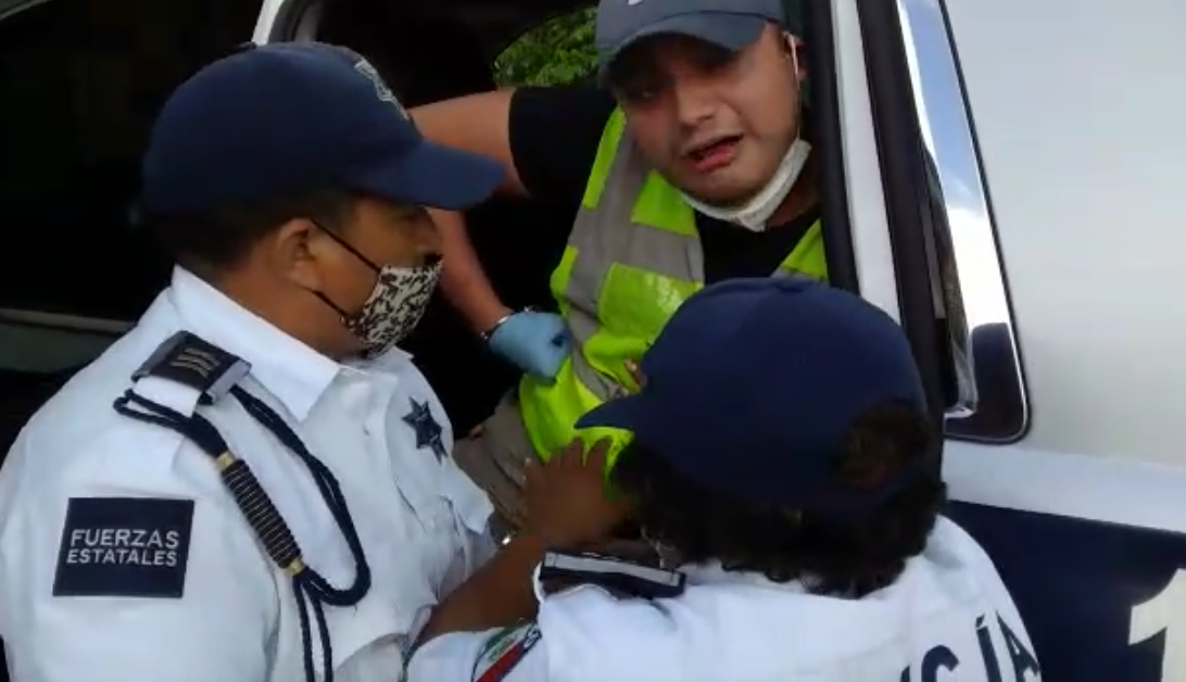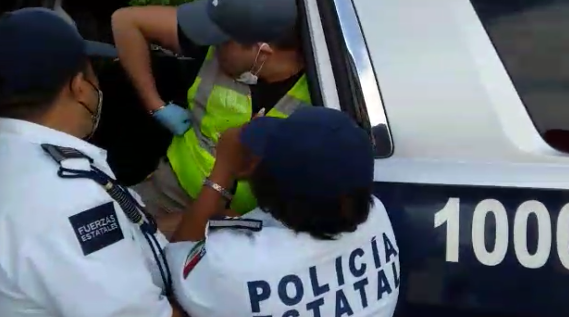 Este suceso ocurrió tras un percance vehicular ocurrido en la avenida Isla Cancún y con avenida Benito Juárez, de la colonia David Gustavo Gutiérrez, el paramédico fue llevado a la cárcel municipal.