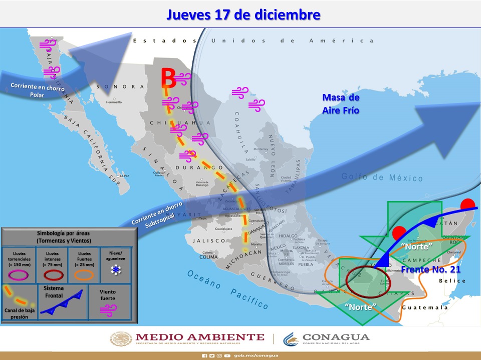 Este es el frente Frío numero 21, aunque en la temporada invernal se estima que hayan 54 frentes fríos, por lo que no se debe bajar la guardia y hay que abrigarse adecuadamente.