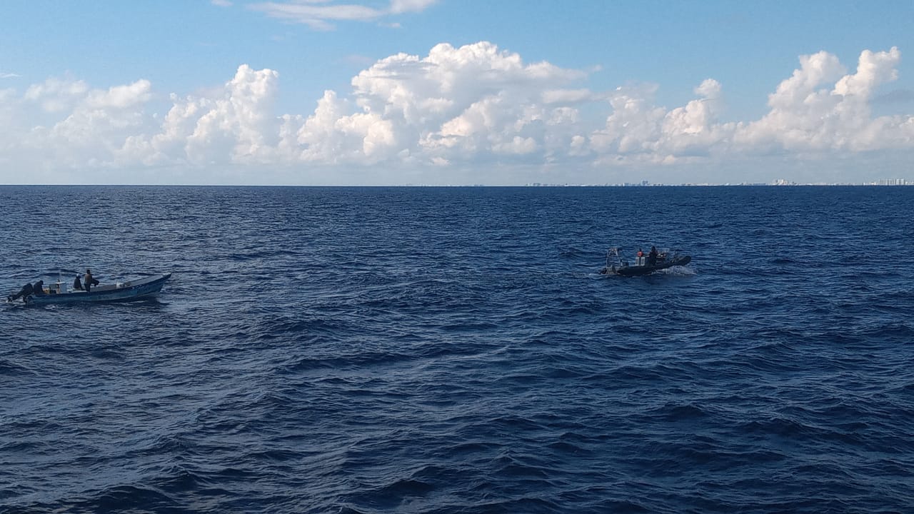 La embarcación utilizada para salvaguardar ayudar a las las personas es una unidad tipo RHIB de la Patrulla Costera, la cual se encargo de remolcar la pequeña embarcación descompuesta y a sus tripulantes hasta el muelle de la Quinta Región Naval, donde eran esperados por personal de la Capitanía de Puerto de Isla Mujeres para su valoración médica y los trámites correspondientes.