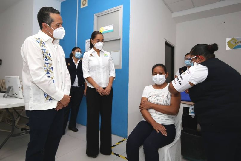 Chetumal 13 de enero.- La enfermera Juana Álvarez Carreón del área de cirugía COVID del Hospital General de Chetumal, fue la primera persona en todo Quintana Roo en ser vacunada contra COVID-19, posteriormente Hugo Enrique Magaña López quien es médico general en el área de urgencias Covid-19 fue el segundo en ser vacunado, de esta manera comienza la primera etapa de vacunación del personal médico en el estado.