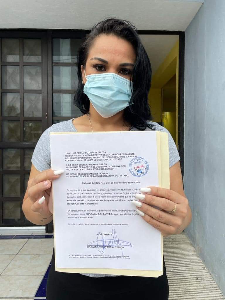 Quintana Roo 20 de enero.- La ex presidenta de la Junta de Gobierno y Coordinación Política (Jugocopo), del Congreso del Estado, Reyna Durán Ovando, renunció a la Fracción Parlamentaria de Morena en la XVI Legislatura; los agravios a los estatutos de parte de ‘oportunistas’ que copan los espacios a los fundadores ocasionaron su dimisión. LaSigueSigue leyendo «LA DIPUTADA REYNA DURÁN OVANDO DICE ADIOS A MORENA, AHORA SERA INDEPENDIENTE»