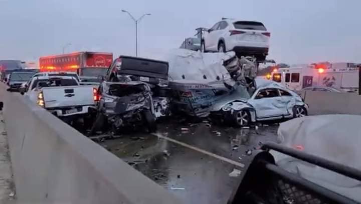 El aparatoso accidente se registro en la carretera inter estatal 35 Fort Worth, en DallasTexas donde las autoridades arribaron y comenzaron a auxiliar a las personas que se encontraban en el lugar, hay que señalar que el Servicio Nacional del Clima había informado que la lluvia congelada iba a ser una constante por lo que se exhorto a los ciudadanos a extremar las precauciones, aunque desafortunadamente el desenlace fue trágico.