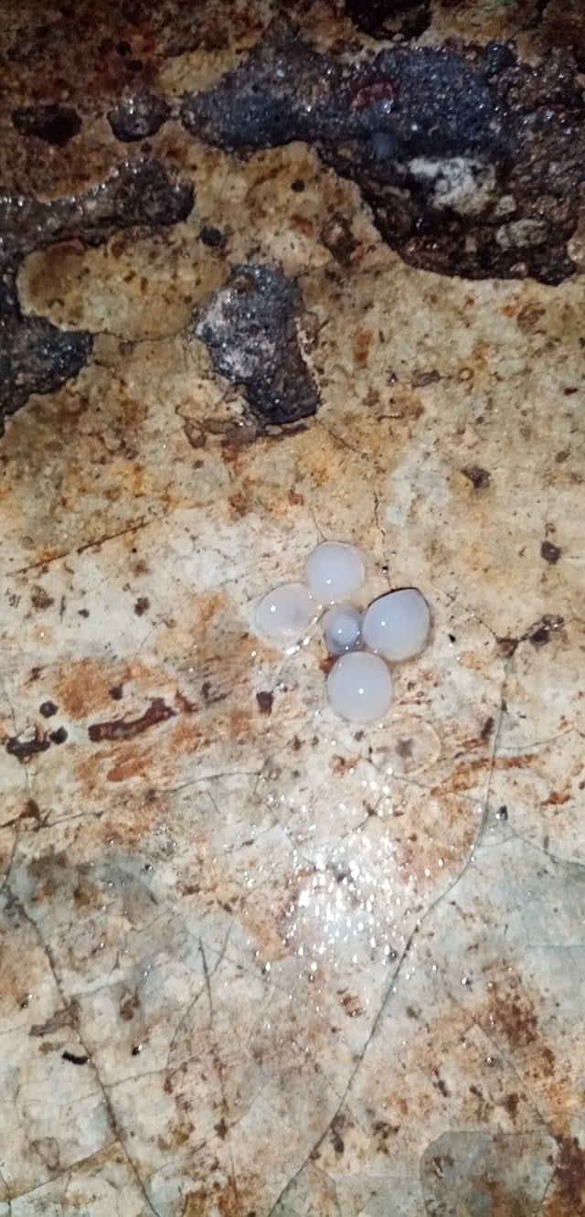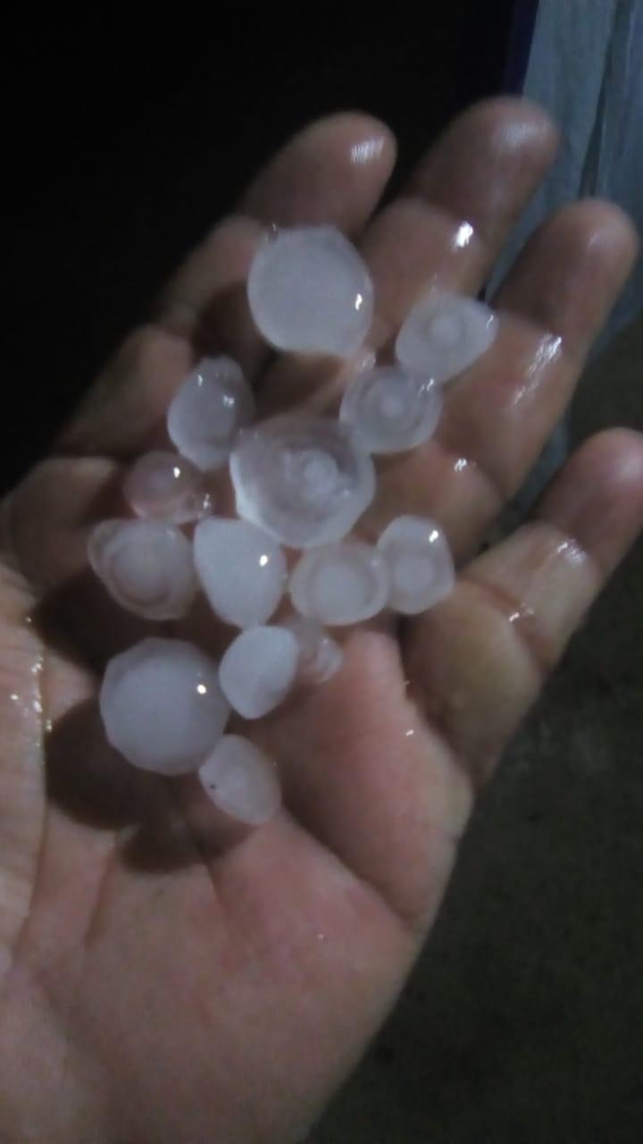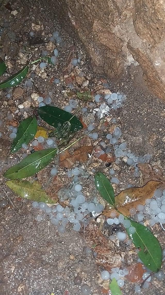 Los habitantes de aquella comunidad compartieron a través de las redes sociales diversa fotografías en las que se puede ver los pequeños pedazos de hielo que cayeron esta noche ante la entrada del frente frío.