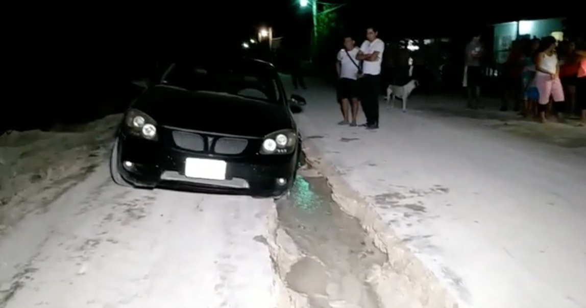 En la colonia Diego Rojas Zapata de Bacalar, los pésimos trabajos realizado por la Comisión de Agua Potable y Alcantarillado (CAPA) han provocado una gran cantidad de problemas en las calles del decimo municipio, tal como se puede ver en la calle 19 B entre avenida 2 y 4 tal como ocurrió durante la noche del jueves cuando vecinos se percataron que las calles se encuentran desfondándose debido a los pésimos trabajos realizados y que hoy día provocaron un accidente, incluso se puede ver el agua fluir del suelo.