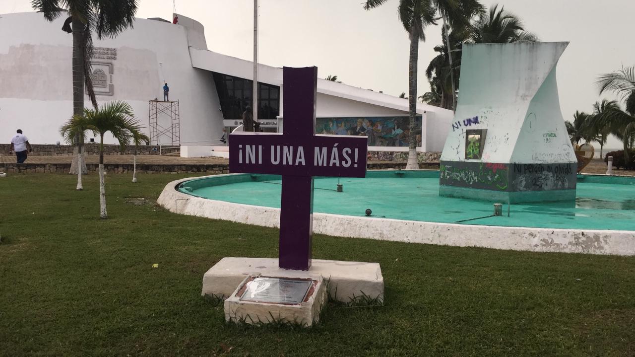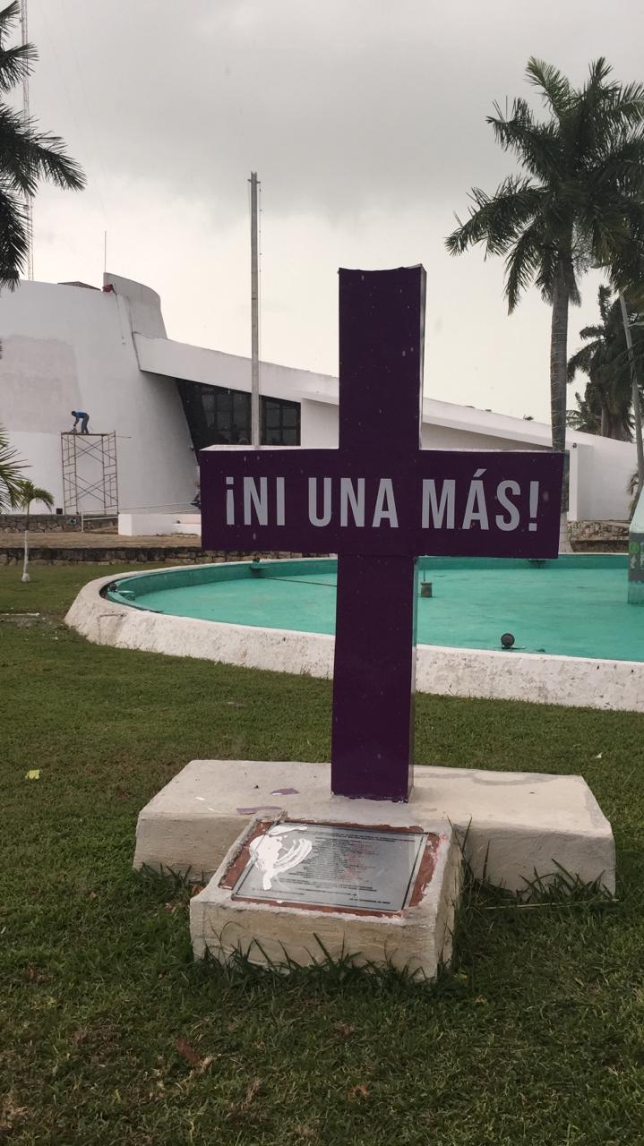 Una cruz denominada “La antimonumenta” que fue instalada por la Red Feminista Quintanarroense (RFQ) en el Parque del Congreso del Estado, en exigencia al respeto a los derechos sexuales y reproductivos de las mujeres, fue parcialmente destruida durante la madrugada del jueves.