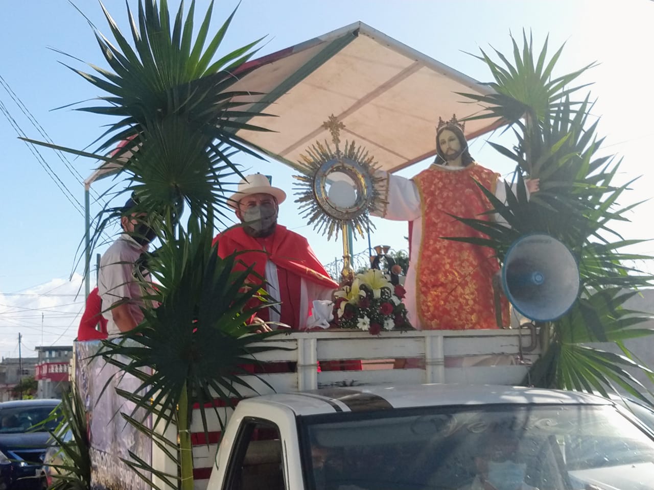 Por la tarde se realizó el recorrido con el Santísimo Sacramento, en donde a su paso por el territorio parroquial se bendijeron los ramos y altares que las familias adornaron afueras de sus casas, además de regalarles «guano bendito».