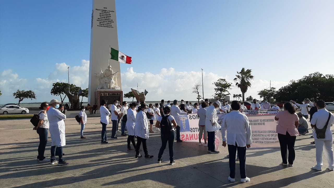 Este domingo trabajadores del Sector Salud marcharon en calles de Chetumal, esto como protesta ya que sigue habiendo gran parte del personal de primera línea, que aun no ha sido vacunado contra el covid-19.