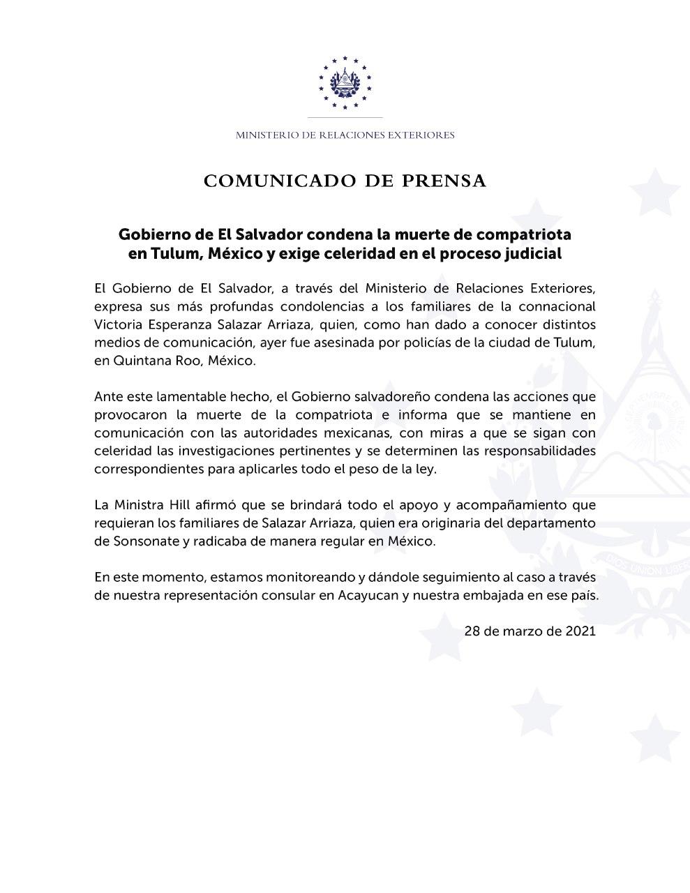 Como se recordara el pasado sábado una mujer perdió la vida a manos de elementos policiales, quienes la sometieron de una manera brutal en calles del municipio de Tulum, se trata de Victoria, una mujer de nacionalidad Salvadoreña y que se encontraba vivienda en Quintana Roo junto a dos pequeñas a las cuales dejo en la orfandad.