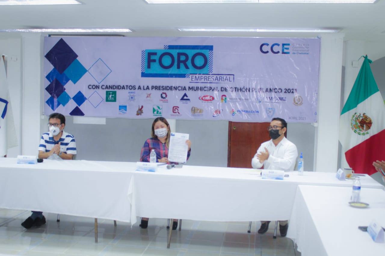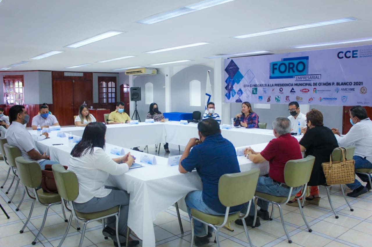 En el Foro estuvieron presentes Eloy Quintal Jiménez, presidente del Consejo Coordinador Empresarial CCE; Juan Jaime Mingüer Cerón, Presidente de la Cámara Nacional de Comercio y Servicios Turísticos Zona Sur; Beyra Aguirre Villegas, presidenta de la Cámara Nacional de la Industria Restauranteros y Alimentos Condimentados Delegación Chetumal; Joaquín Noh Mayo, presidente de la Unión de Propietarios de Restaurantes Bares y Similares de Chetumal; Karla María Almanza López, presidenta de la Asociación Mexicana de Mujeres empresarias Capitulo Chetumal; Manuel Santiago Baeza del Valle, presidente del colegio de Arquitectos de Quintana Roo A.C.; Diego Cortez Arzola presidente de la Cámara de Industria de la construcción delegación Quintana Roo; Manuel Jesús Raygoza Alcocer, presidente del colegio de Economistas de Quintana Roo A.C.; María del Carmen Borges Zepeda, presidenta del colegio de ingenieros Civiles de Quintana Roo zona sur A.C.; Carlos Ciu y Pic, presidente se la asociación de egresados del ITCH; Germán Gaitán Guerrero, presidente de la asociación Méxicana de la Industria de la Construcción delegación Quintana Roo; Bertha Núñez Cáceres, presidenta de la Asociación de Hoteles y Servicios Turísticos del Centro y Sur de Quintana Roo y Arcadio Valles Alavés, presidente de la Cámara Nacional de la Industria de la Transformación.