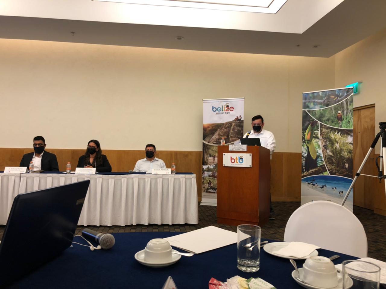 Estuvieron presentes el ministro de Turismo de Belize, Honorable Anthony Mahler; ministro de Estado en el Ministerio de Relaciones Exteriores, Comercio Exterior e Inmigración, Honorable Ramón Cervantes; la directora ejecutiva del Ministerio de Turismo de Belize, Lic. Nicole Solano; el presidente de la Oficina de Turismo de Belize, Lic. Evan Tillett, el Dr. Luis G. Montero, Cónsul Honorario de Belize en Quintana Roo y el jefe técnico del Ministerio de Turismo de Belize, Lic. Abil Castañeda.