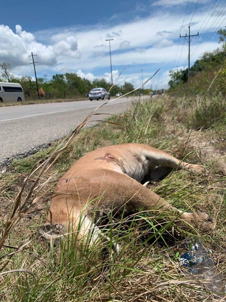 El cadáver del animal de aproximadamente 50 kg de peso, fue encontrado a la orilla de la carretera federal, aproximadamente al mediodía, a unos metros después de la curva que se encuentra después de Punta Venado.