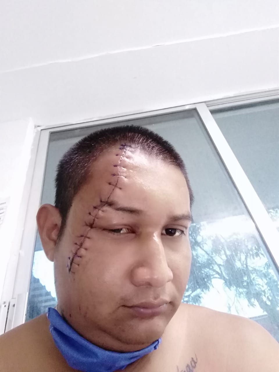 Con fractura de cráneo, dos coágulos en el cerebro, 16 puntadas y una burbuja de aire, es como terminó el cumpleaños del joven de José Del Carmen, luego de qué el pasado viernes sufrió abuso policial en la colonia pro territorio de la ciudad capital, cuando estos intentaron someterlo y al no lograrlo, lo empujaron hacia una casa donde se fracturo la cabeza y cayo inconsciente.
