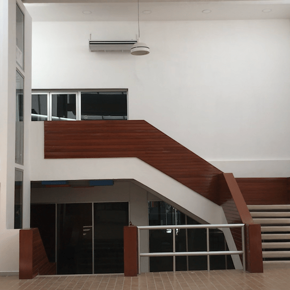 Mientras tanto en la planta alta: se encuentran otras áreas como son el taller fablab maya, la zona de talleres, el taller digital, el espacio dedicado a la cultura del cuidado del agua, el área de consulta general, el área de consulta digital y las áreas verdes.