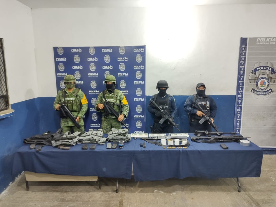 Un gran despliegue militar y policial se registro durante la madrugada de este domingo en la zona rural del municipio de Othón P. Blanco, donde los elementos castrenses de la Secretaría de la Defensa Nacional que eran acompañados por el personal de la Policía Quintana Roo, lograron llevar a cabo el aseguramiento de diversas armas,SigueSigue leyendo «AUTORIDADES ASEGURAN ARSENAL EN LA COMUNIDAD DE NICOLÁS BRAVO. ARMAS LARGAS, CARGADORES ABASTECIDOS Y CHALECOS ES LO ASEGURADO.»