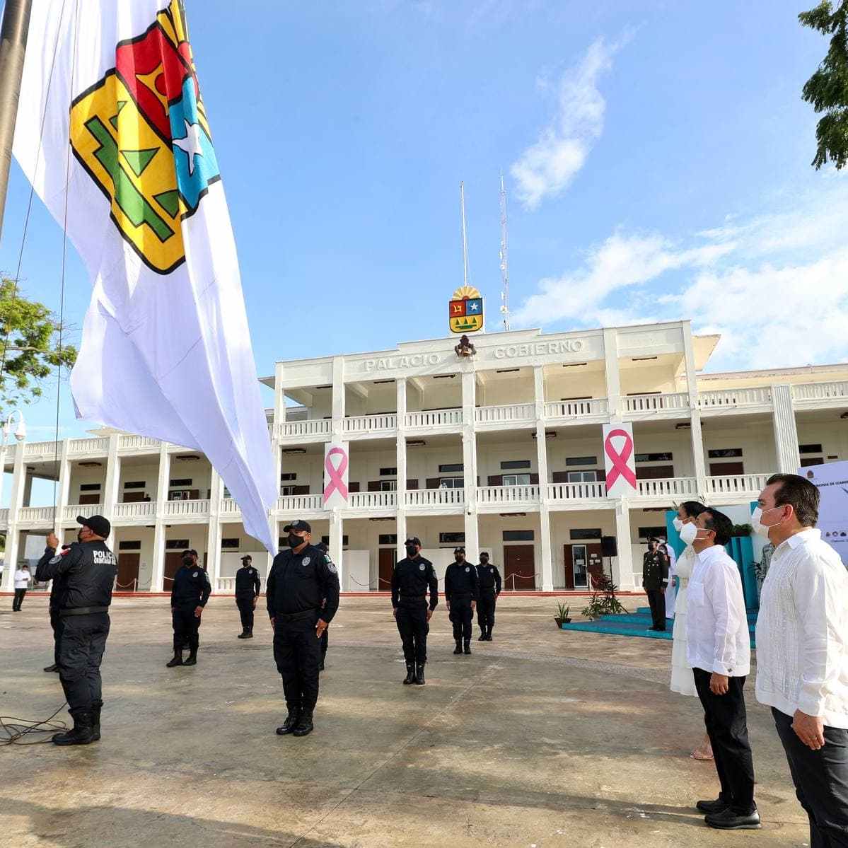 Por la mañana, el gobernador Carlos Joaquín encabezó la ceremonia de izamiento de la bandera de Quintana Roo en la Plaza Cívica de la Bandera, frente a Palacio de Gobierno.
