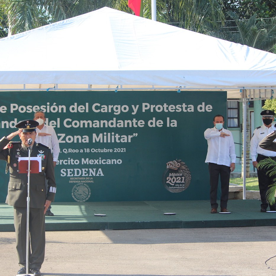 El General Brigader DEM. Roberto Pérez Ceja, dio a conocer que se tiene conocimiento de las actividades que se realizan en el estado de Quintana Roo al ser una zona fronteriza, señalando que mantendrán la forma de trabajo que se tienen ya establecidas. “Vamos a continuar trabajando como ha venido trabajando el ejercito mexicano, la décima región militar y la 34 zona militar, es un estado muy importante para el país por lo que representa al país, seguiremos trabajando para abatir los niveles de delincuencia”.