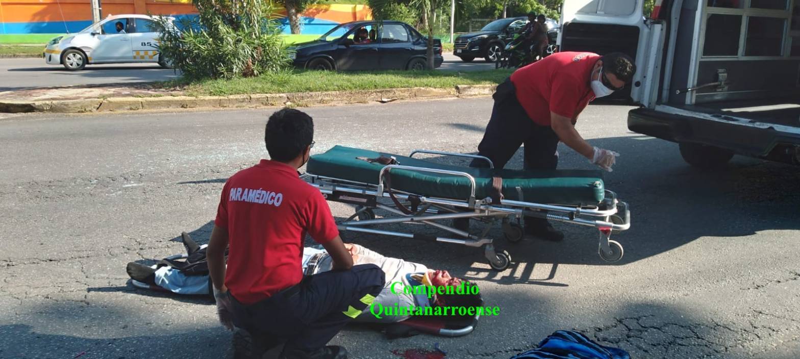 El joven motociclista intento esquivar el impacto pero desafortunadamente no logro hacerlo y terminó colisionando contra del taxi, como resultado del impacto el motociclista cayo al pavimento donde sufrió diversas lesiones abrasivas y posible fractura de cráneo motivo por el cual fue trasladado al Hospital General de Chetumal donde se le brindo la atención correspondiente.