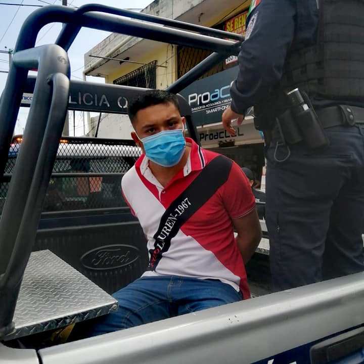 Afortunadamente varios taxistas lograron ver al maleante cuando escapaba y lo siguieron para finalmente detenerlo en la calle Mahatma Gandhi entre Belice y Benito Juárez, en un establecimiento donde reparan celulares.
