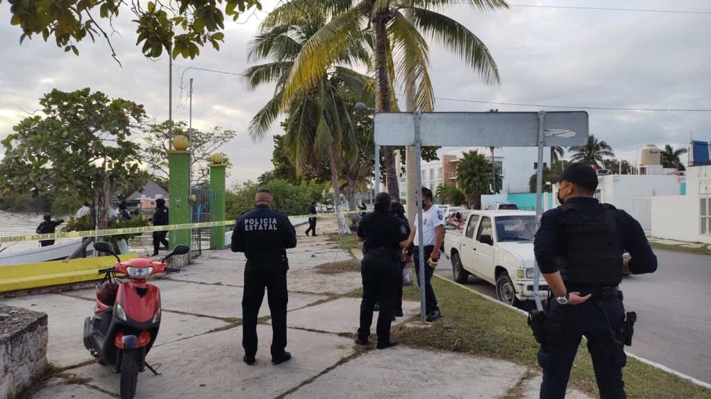 Fuerzas municipales, estatales y federales, arribaron al lugar y acordonaron el área donde estaba la lancha pesquera color blanco con un motor, en ella iba la persona que había sido lesionada por un proyectil de arma de fuego, este individuo de estaba revisando sus trampas para capturar jaibas cuando fue atacado a balazos por miembros de las fuerzas policiales del vecino país Belice que se resguardaban entre la maleza.