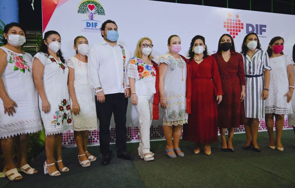 En una nutrida ceremonia en el domo doble de la Colonia Cecilio Chi de esta cabecera Municipal, la Presidenta del sistema DIF Estatal, Sra. Gabriela Rejón de Joaquín y la Presidenta del DIF Felipe Carrillo Puerto, Sra. María del Carmen Solís Sánchez encabezaron y atestiguaron la toma de protesta de las damas voluntarias que contribuirán a las tareas del DIF Carrilloportense en este periodo del 2021-2024.