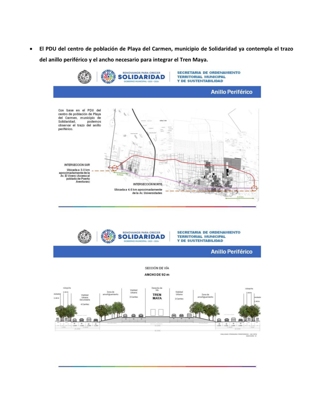 La sociedad civil, proponemos : LA INTEGRACIÓN DEL TREN MAYA AL ANILLO PERIFÉRICO, y solicitamos considerar ésta y ninguna otra intervención urbana para el paso del Tren Maya por Playa del Carmen.